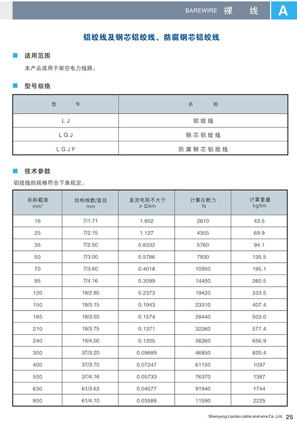 本產(chǎn)品適用于架空電力線路用的鋁絞線及鋼芯鋁絞線。