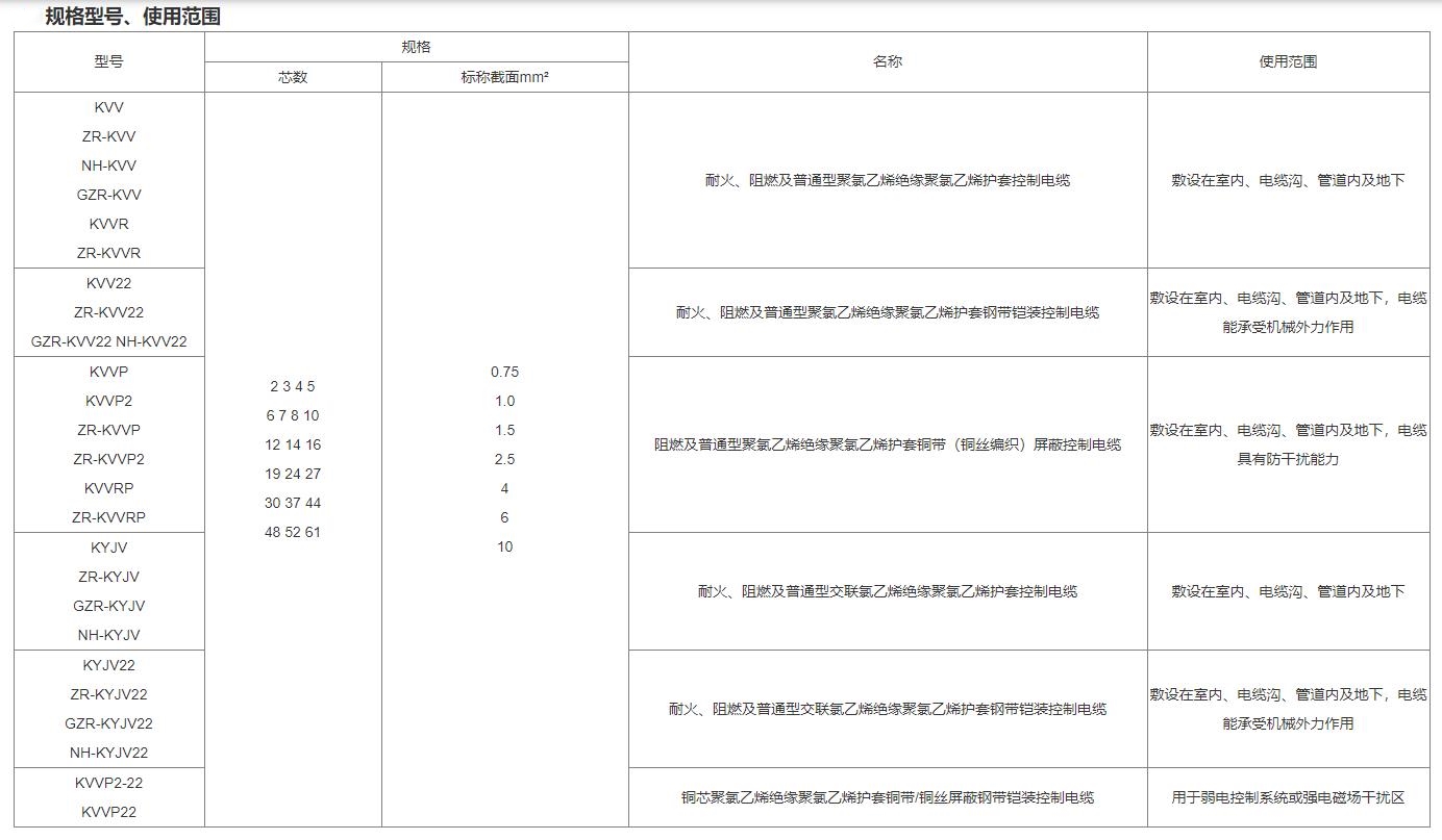 額定電壓450/750V聚氯乙烯絕緣控制電纜和450/750V交聯聚乙烯絕緣控制電纜分別用于450/750V及以下控制、監控回路及保護線等場所。聚氯乙烯絕緣控制電纜的工作溫度為70℃,交聯聚乙烯絕緣控制電纜的工作溫度為90℃。
