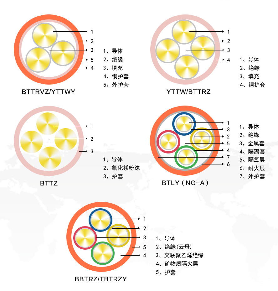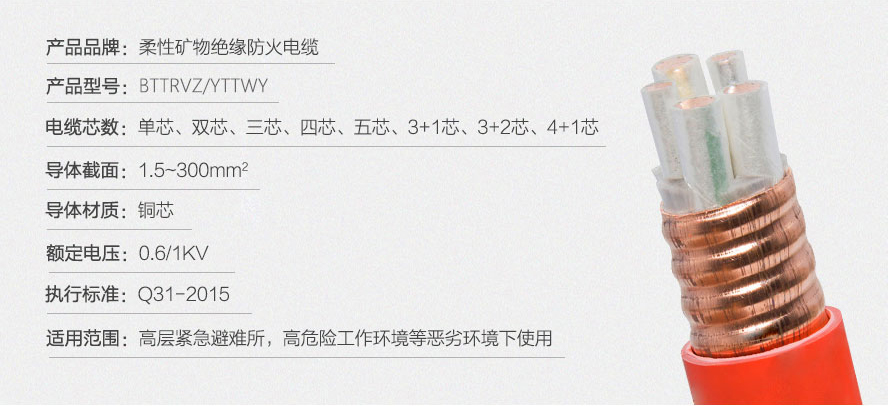 BTTRVZ/YTTWV:銅芯銅護(hù)套扎紋無機(jī)絕緣聚氯乙烯外護(hù)套柔性礦物質(zhì)防火電纜,俗稱防火電纜。