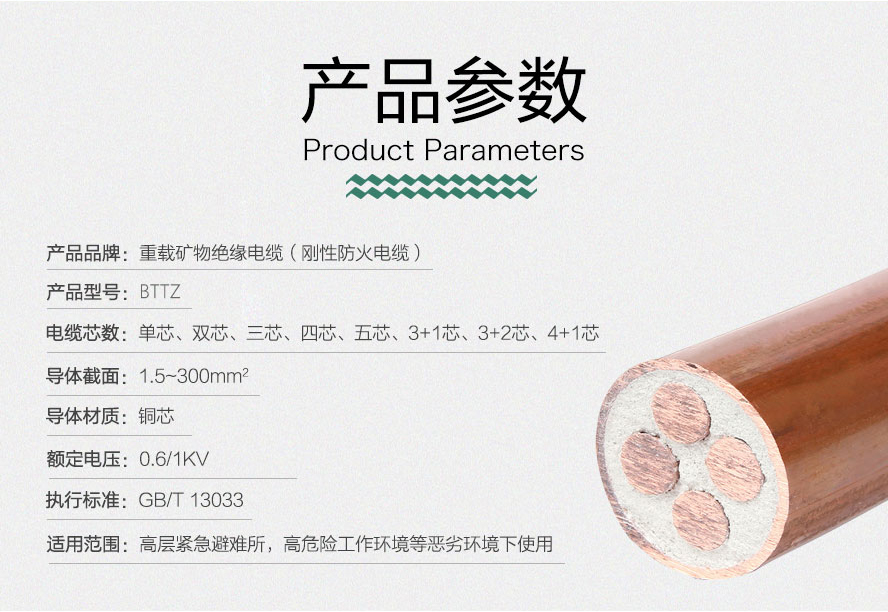 BTTZ:銅芯氧化鎂絕緣重載銅護(hù)套阻燃防火電纜,又稱作重載礦物絕緣電纜。